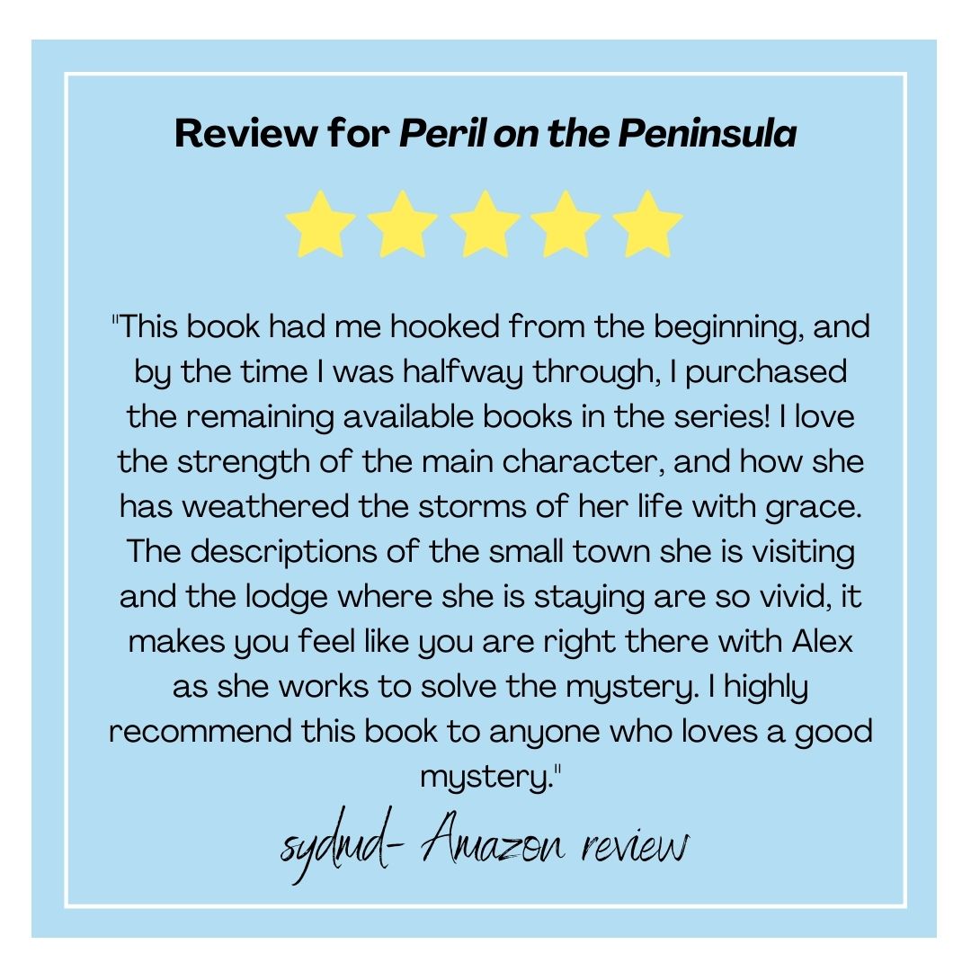 Peril on the Peninsula is the first book in the Alex Paige Cozy Travel Mysteries Series. If you love engaging characters, dastardly villains, and a setting that’ll have you booking your next adventure, you’ll love Theresa L. Carter’s debut novel.